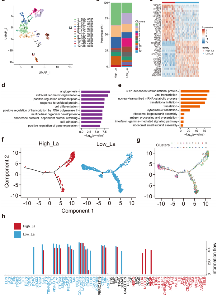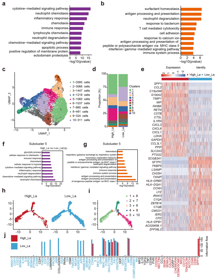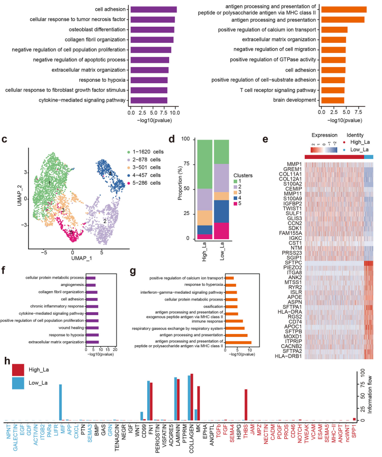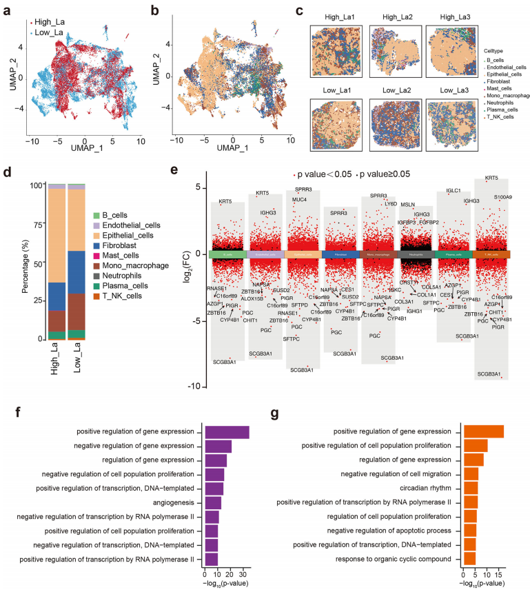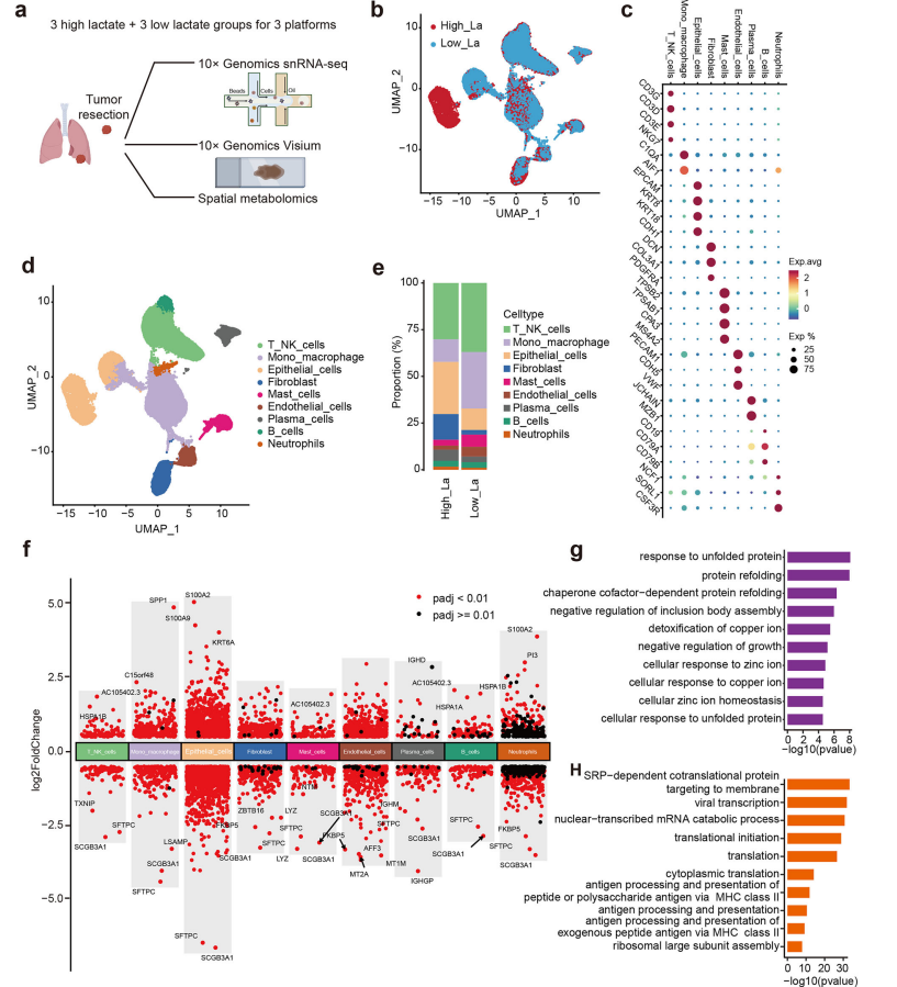 图1.单细胞转录组学分析揭示肺腺癌与乳酸水平相关的独特细胞及分子特征