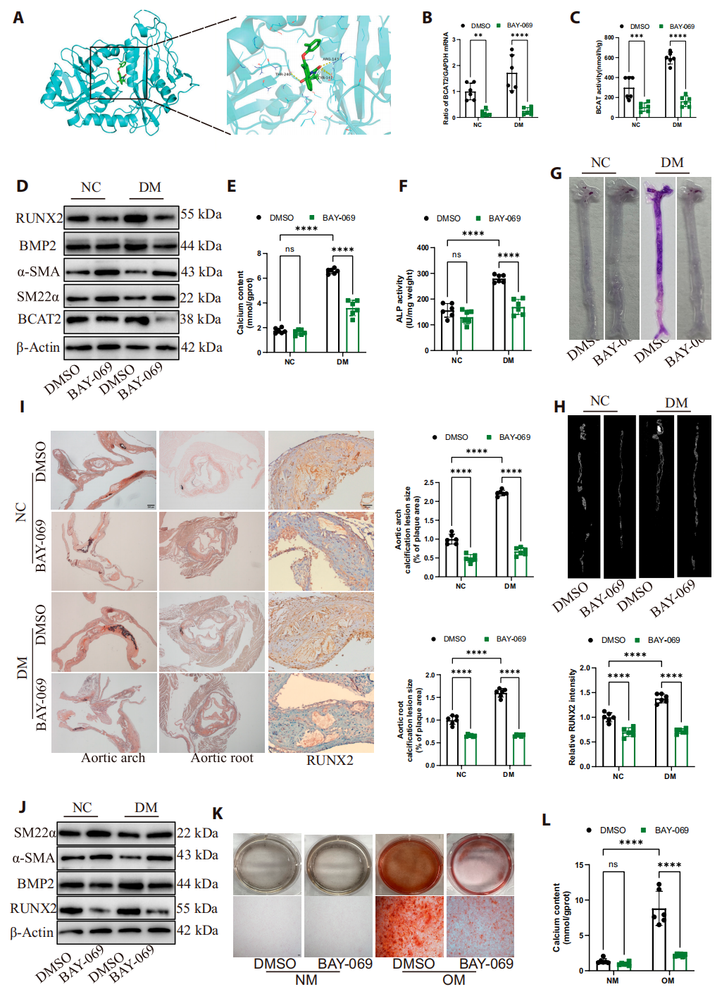 首次明确BCAT2为糖尿病动脉钙化的潜在治疗靶点,且验证BCAT2抑制剂BAY-069可有效阻断钙化通路,为临床药物研发和疾病干预提供了直接实验依据。