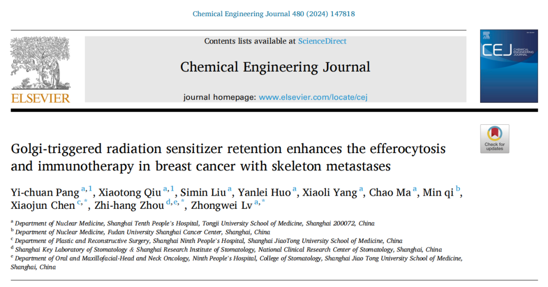 Chemical Engineering Journal | 高尔基触发的放射增敏剂增强了乳腺癌骨转移中的胞葬作用和免疫治疗