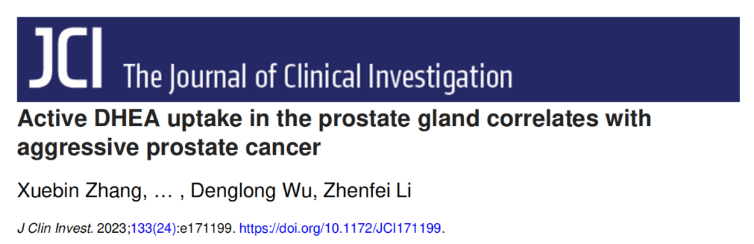 Journal of Clinical Investigation | 前列腺活跃的DHEA摄取与侵袭性前列腺癌相关