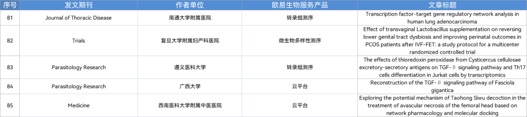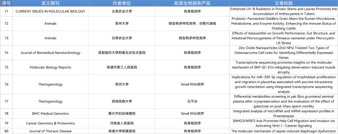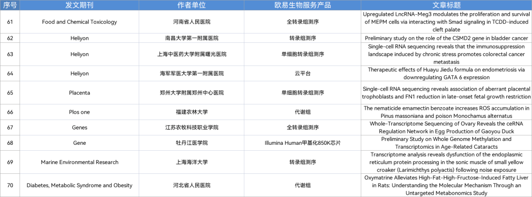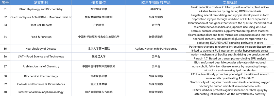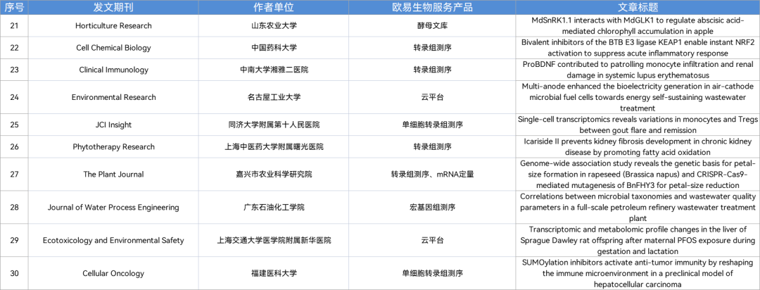据不完全统计,2023 年 12 月欧易生物已助力 85篇客户文章发表在各领域知名期刊上,累计 IF高达 583.8 分,平均 IF 达到 6.9分。其中包括Cell Host & Microbe,Bioactive Materials,Nano Today,Nature Communications等在内的10分以上文章 13 篇。