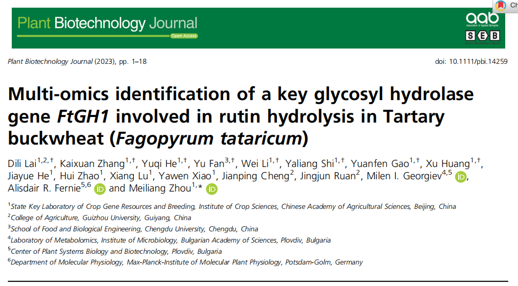 Plant Biotechnology Journal | 多组学方法解析关键糖基水解酶FtGH1调控苦荞芦丁水解的机制