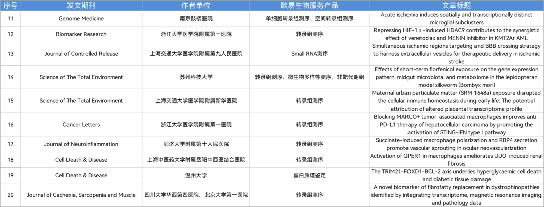 多年来,欧易生物深耕于基因测序行业,致力于为生命科学领域的科学家和研发人员提供创新多组学技术服务。欧易生物在单细胞与空间多组学、传统转录组学、基因组学、蛋白代谢组学及微生物等方向积累了深厚经验,打造了成熟的多组学一站式服务平台。迄今为止,我们以“硬数据,好服务”的理念,助力客户在高端国际期刊上发表了大量文章。