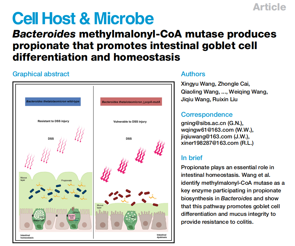 Cell Host & Microbe | 拟杆菌甲基丙二酰-辅酶A变位酶合成丙酸促进肠杯状细胞分化和稳态