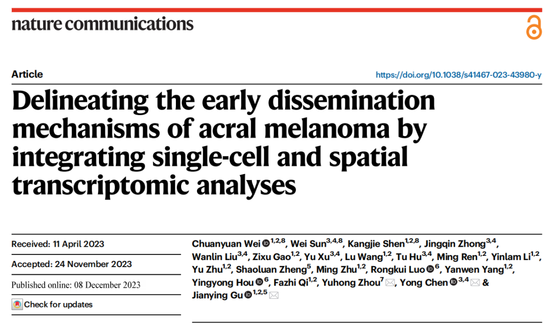 Nature Communications| 单细胞转录组和空间转录组揭示肢端黑色素瘤的早期扩散机制