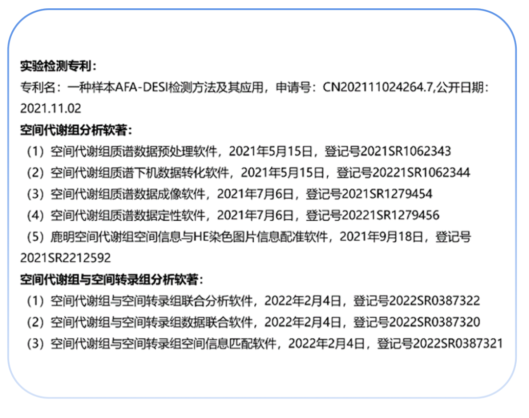 多项空间代谢组专利及软著数量