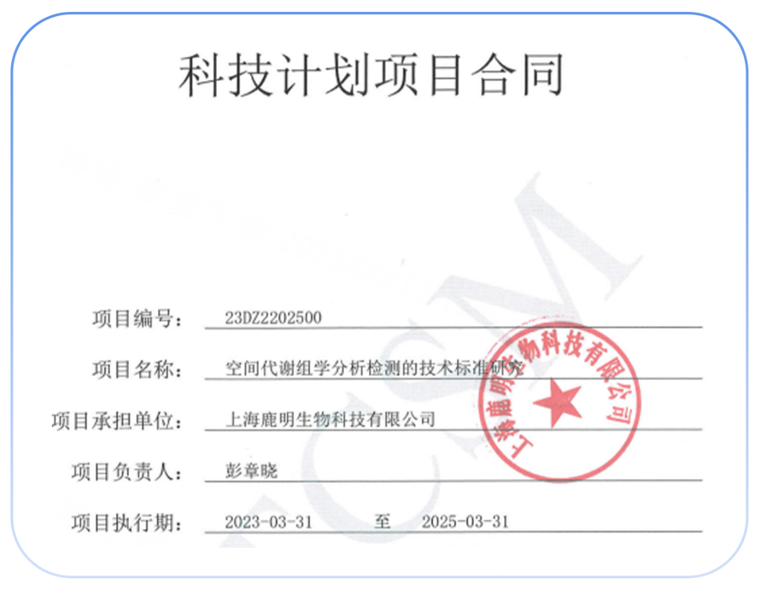 欧易生物质谱注重空间代谢组研发,获得上海市科委的空间代谢组标准建立的批文,进行空间代谢组行业标准建立。大力度的研发投入,不断提高空间代谢组的数据质量。