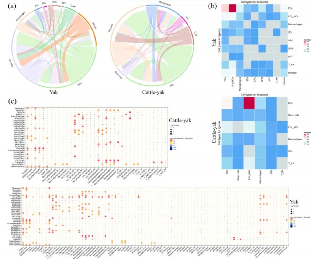 2023年9月15日,中国农业科学院兰州畜牧与兽药研究所郭宪研究员团队在International Journal of Biological Macromolecules(IF 8.2)上在线发表了题为“Single-cell RNA sequencing and UPHLC-MS/MS targeted metabolomics offer new insights into the etiological asis for male cattle-yak sterility”的文章,文章构建了牦牛和犏牛(牦牛与普通牛的杂交后代)睾丸单细胞图谱,并揭示了牦牛和犏牛睾丸组织细胞通讯网络的异同,为雄性杂交后代不育的生理学研究提供了新的见解。欧易生物提供了该项目的单细胞转录组测序实验和分析工作。