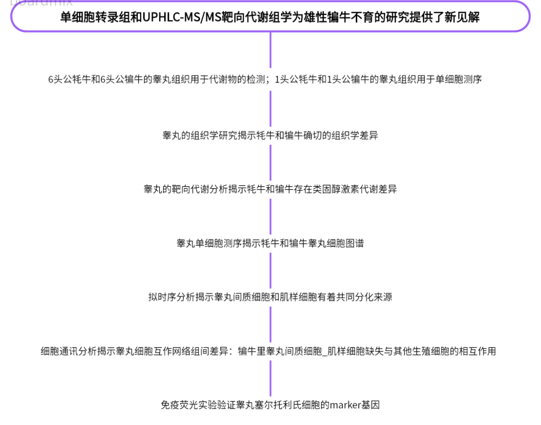 原文链接: Wang X, Pei J, Xiong L, Kang Y, Guo S, Cao M, Ding Z, Bao P, Chu M, Liang C, Yan P, Guo X. Single-cell RNA sequencing and UPHLC-MS/MS targeted metabolomics offer new insights into the etiological basis for male cattle-yak sterility. Int J Biol Macromol. 2023 Dec 31;253(Pt 3):126831.