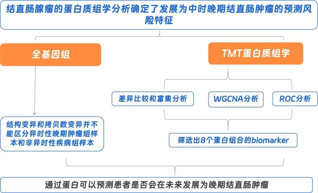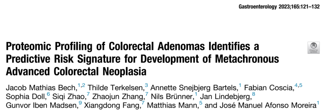 2023年3月23日,丹麦哥本哈根大学Jacob Mathias Bech团队在Gastroenterology期刊(IF 29.4)发表题为“Proteomic Profiling of Colorectal Adenomas Identifies a Predictive Risk Signature for Development of Metachronous Advanced Colorectal Neoplasia”的研究成果。本研究采用TMT蛋白质组和全基因组测序的方法,通过比较45个非异时性晚期腺瘤组(G0)和53个异时性晚期腺瘤组(G1)的蛋白表达差异,通过蛋白可以有效地预测患者是否会在未来发展为晚期结直肠肿瘤。 发表期刊:Gastroenterology 影响因子:29.4 材料:石蜡切片腺瘤样本 非异时性晚期腺瘤:45个 异时性晚期腺瘤:53个 技术方法:TMT蛋白质组和全基因组测序