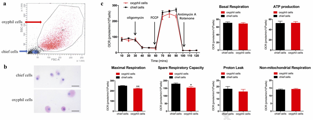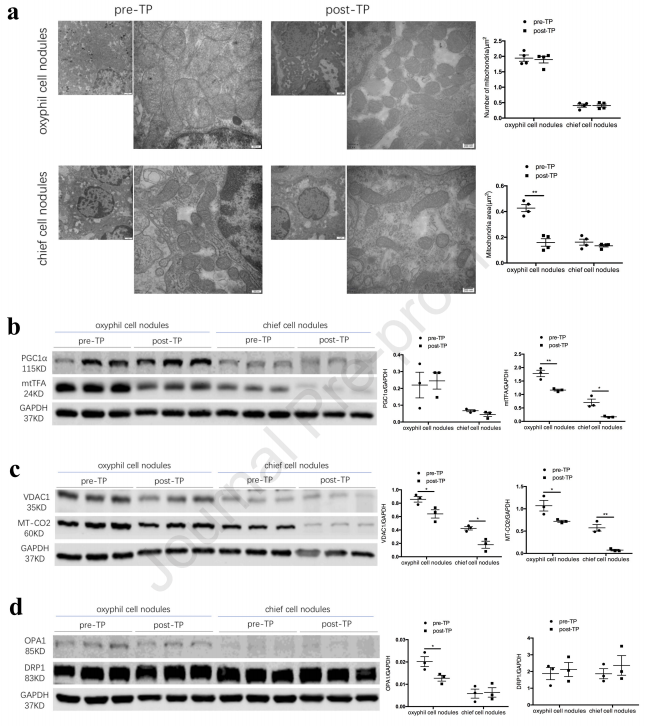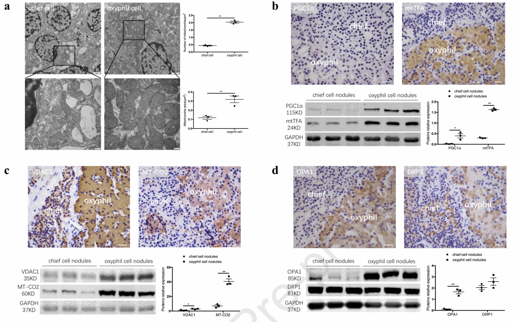 图4 嗜酸细胞中线粒体生物发生、含量和融合增加