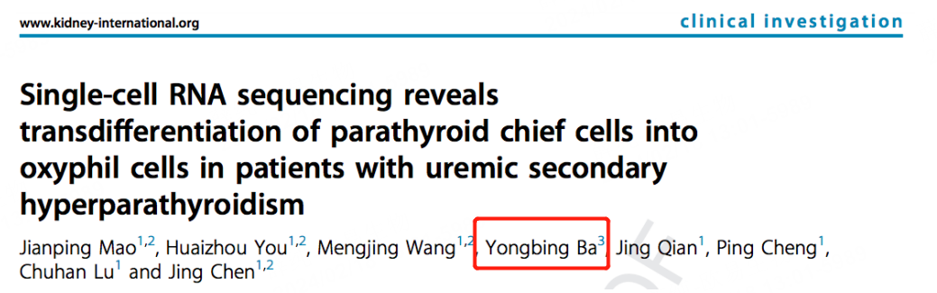 原文链接: Mao J, You H, Wang M, et al. Single-cell RNA sequencing reveals transdifferentiation of parathyroid chief cells into oxyphil cells in patients with uremic secondary hyperparathyroidism. Kidney Int. Published online December 21, 2023. doi:10.1016/j.kint.2023.11.027IF: 19.6 Q1