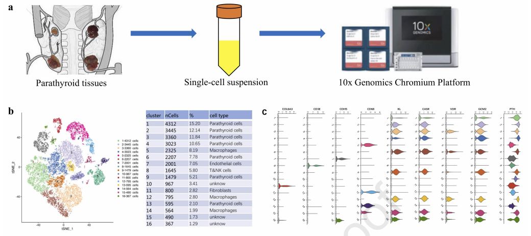 发表期刊:Kidney International 影响因子:19.6 材料:三名尿毒症SHPT患者甲状旁腺 方法:10x Genomics单细胞转录组测序